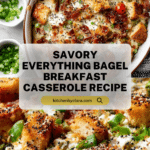 This Everything Bagel Breakfast Casserole combines the savory flavors of everything bagels, crispy bacon, fresh vegetables, and creamy cheeses baked to perfection. It’s a hearty and satisfying breakfast or brunch dish that’s easy to prepare ahead and reheat for busy mornings.