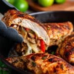 This Fajita Stuffed Chicken recipe combines tender chicken breasts with a flavorful mix of sautéed vegetables and melted pepper jack cheese. It’s a delicious, satisfying meal that brings the vibrant flavors of fajitas right to your plate.