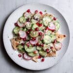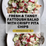 Keywords: fattoush, Middle Eastern salad, pita chips, sumac dressing, fresh vegetable salad, healthy salad recipe, vegetarian salad