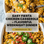 Keywords: Fiesta Chicken Casserole, Mexican Chicken Casserole, Easy Chicken Dinner, Baked Chicken Pasta, Taco Seasoned Casserole