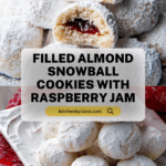 Filled Almond Snowball Cookies are delicate, buttery treats with a surprise center of raspberry jam. Coated in powdered sugar, these cookies melt in your mouth and are perfect for special occasions or a sweet everyday indulgence.