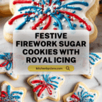 Firework Cookies are festive sugar cookies decorated with vibrant royal icing to resemble dazzling fireworks. These soft, buttery cookies are rolled thin, cut into star shapes, and baked to perfection before being decorated with smooth white royal icing and colorful red and blue designs. Ideal for celebrations and holidays, these cookies are as delightful to make as they are to eat.