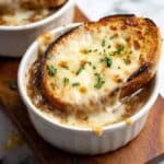 - Use day-old French bread for better texture when toasting and topping the soup.