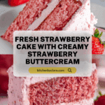 Keywords: Strawberry cake, strawberry buttercream, fresh strawberry cake, berry cake, summer dessert, homemade cake, strawberry frosting
