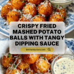 Fried mashed potato balls are crispy on the outside and creamy on the inside, making them a perfect comfort snack or side dish. This recipe combines flavorful potatoes with a tangy dipping sauce for a delicious treat that everyone will love.