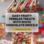 Delight in these colorful and crunchy Fruity Pebbles Treats, a fun twist on the classic marshmallow cereal bars. Made with buttery marshmallow binding and topped with a smooth almond bark drizzle, these treats are perfect for parties, snacks, or a nostalgic sweet bite.