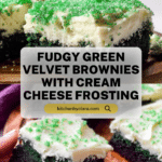 Delight in these fudgy green velvet brownies featuring a rich chocolate base with a vibrant green twist, topped with a creamy, tangy cream cheese frosting and festive green sprinkles. Perfect for holidays or themed celebrations, these brownies balance indulgent chocolate flavors with a smooth, sweet finishing touch.