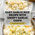 This Garlic Rice recipe features richly toasted garlic and buttery long-grain white rice simmered in savory chicken broth for a fragrant and comforting side dish. Crispy garlic chips add an irresistible crunch, and fresh parsley offers a bright, herbaceous finish. Perfect for pairing with a variety of main courses, this easy stovetop recipe elevates simple rice with aromatic garlic flavor.