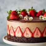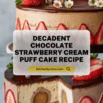 Gesine’s Chocolate and Strawberry Cream Puff Cake is a stunning layered dessert combining a tender chocolate cake base, rich chocolate pastry cream, and fresh strawberry filling. Mini cream puffs filled with strawberry cream circle the cake interior, while a glossy ganache finish tops it off, creating an elegant and indulgent treat perfect for special occasions.
