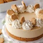 - Decorate and Serve: Carefully remove the cheesecake from the springform pan. Pipe the whipped cream around the edges of the cheesecake and decorate with gingerbread men as desired. Keep refrigerated until ready to serve.