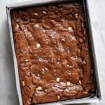 - Step 5: Spread the batter evenly in the prepared pan. Bake for about 27 minutes, until the edges are set and the center is slightly jiggly. If desired, sprinkle flaky sea salt over the top while still warm.
