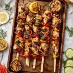 Keywords: Greek chicken kabobs, grilled chicken skewers, Mediterranean chicken recipe, tzatziki chicken, summer barbecue recipes, grilled lemon chicken