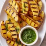 Keywords: grilled potatoes, basil parsley sauce, smoky potatoes, summer side dish, grilled vegetables, easy potato recipe