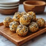 These High-Protein Bagel Bites are a delicious and nutritious snack made with gluten-free flour, protein powder, and Greek yogurt. Perfect for a quick breakfast or snack, these bagel bites are air-fried to a golden brown and filled with creamy cream cheese, topped with Everything But The Bagel seasoning for a flavorful crunch.