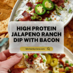 This High Protein Jalapeno Ranch Dip is a creamy, tangy, and spicy dip made with Greek yogurt or blended cottage cheese, infused with homemade ranch seasoning, pickled jalapenos, and crispy bacon. It’s perfect as a flavorful, protein-packed accompaniment to chips, crackers, or fresh vegetables, and is easily customizable to suit dairy-free diets.