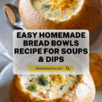 This recipe shows you how to make homemade bread bowls with a soft, golden crust and a chewy interior, perfect for serving soups, salads, or dips. Using simple pantry ingredients and a straightforward process, you’ll create a versatile bread container that’s both delicious and impressive for any meal or gathering.