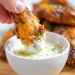 - Garnish and Serve: Sprinkle chopped parsley over the wings for a fresh touch. Serve immediately with the remaining honey mustard sauce on the side for dipping.