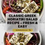 Horiatiki Salad, or traditional Greek salad, is a fresh and vibrant dish perfect for warm days. Combining ripe tomatoes, crisp cucumber, tangy feta, and briny olives, it’s a simple yet satisfying way to enjoy Mediterranean flavors.