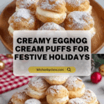 Keywords: egg nog cream puffs, holiday dessert, choux pastry, eggnog custard, festive treats, holiday baking