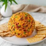 This cheese ball pairs well with a variety of crackers, toasted bread slices, or fresh vegetables like celery, carrots, and bell peppers for dipping.