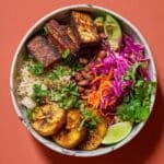 Jerk Tofu Grain Bowls are a vibrant, flavorful dish that brings together spicy marinated tofu, sweet fried plantains, tangy slaw, and comforting rice and peas. This recipe offers a delicious plant-based take on classic Caribbean flavors, perfect for a satisfying lunch or dinner.