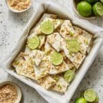 Keywords: key lime yogurt bark, frozen yogurt bark, healthy dessert, gluten-free dessert, protein snack, key lime pie inspired dessert
