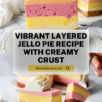 Keywords: Layered Jello Pie, No-Bake Pie, Graham Cracker Crust, Whipped Cream Jello Dessert, Colorful Jello Dessert