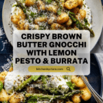 Keywords: brown butter gnocchi, lemon pesto, burrata, asparagus, Italian dinner, easy Italian recipe, vegetarian gnocchi