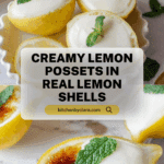 Lemon Possets in Lemon Shells are a delightful, creamy dessert made with a simple mixture of heavy cream, sugar, and fresh lemon juice, elegantly served in hollowed lemon halves. This no-bake custard-like treat balances rich creaminess with tangy lemon flavor, perfect for a refreshing and light dessert.