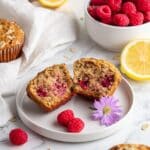 These Lemon Raspberry Oatmeal Muffins are a deliciously moist and healthy treat, packed with protein and bursting with fresh fruit. Perfect for breakfast or a snack, they combine zesty lemon with sweet raspberries for a refreshing flavor.