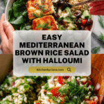 This Mediterranean Brown Rice Salad is a vibrant and healthy dish perfect for lunch or as a side. Packed with fresh vegetables, herbs, and a zesty lemon dressing, it offers a delightful mix of flavors and textures. Adding crispy halloumi on top makes it an irresistible meal.
