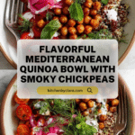 Keywords: Mediterranean quinoa bowl, smoky chickpeas, healthy quinoa recipe, roasted chickpeas, garlic yogurt sauce, vegetarian bowl
