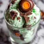 Melted Witch Ice Cream is a festive and delicious no-churn ice cream recipe perfect for Halloween celebrations. Featuring mint chocolate chip flavored ice cream mixed with chopped chocolate pieces and adorned with adorable mini witch hat cookies made from fudge stripe cookies, chocolate chips, and orange icing. This easy-to-make, freezer-friendly dessert combines creamy texture with fun holiday-themed decorations.