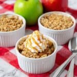 Keywords: apple crisp, individual dessert, baked apples, crumble topping, cinnamon apple dessert, ramekin dessert, easy fall dessert