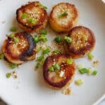- Serve: Serve the vegan scallops garnished with extra scallions and a sprinkle of white sesame seeds for a finishing touch.