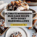 Mississippi Mud Cake is a rich, decadent chocolate cake layered with gooey marshmallow spread and topped with a smooth chocolate ganache, toasted pecans, and optional toasted coconut. This indulgent dessert features a moist cocoa-infused batter complemented by the creamy sour cream and espresso powder for depth, making it perfect for chocolate lovers seeking a luscious treat.