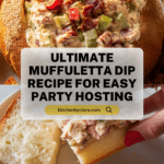 Keywords: Muffuletta dip, Italian dip, bread bowl dip, party appetizer, New Orleans inspired, creamy olive dip, Italian meats dip