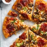 - Customize with toppings like pepperoni, mushrooms, bell peppers, or olives based on your preference.