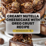 This Nutella Cheesecake is a rich and creamy dessert perfect for chocolate lovers. Combining a crunchy Oreo crust with a smooth Nutella-infused filling and a luscious ganache topping, it’s a showstopper for any occasion.