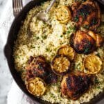 This delicious One Pot Greek Chicken and Lemon Rice combines tender, golden-brown chicken thighs marinated in lemon and oregano with flavorful, aromatic lemon-infused rice. Baked together for a perfect harmony of Mediterranean flavors, this easy-to-make dish brings a fresh and tangy twist to classic comfort food, all cooked conveniently in one pan.