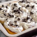 - Frost and Serve: Once the rolls are slightly cooled, spread the frosting generously on top. Optionally sprinkle with additional crushed Oreos before serving. Enjoy warm.
