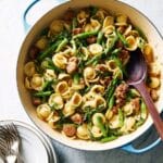 This Pasta With Green Bean Ragù is a comforting and flavorful dish that combines tender green beans with savory Italian sausage in a rich, glossy sauce. Perfect for a satisfying weeknight dinner, it brings together simple ingredients into a deliciously saucy pasta meal.