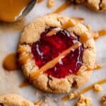 - Optional Garnish: For presentation, add a bit more jam on top of each cookie, then drizzle with melted peanut butter and sprinkle chopped peanuts as desired.