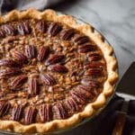 This classic pecan pie recipe features a flaky homemade pie crust filled with a rich, buttery custard bursting with toasted pecans and just the right amount of sweetness and bourbon flavor. Perfectly baked to achieve a golden top and a luscious, slightly soft center, this pie is a holiday favorite or a delightful dessert for any occasion.