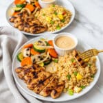 - Plate and serve: Arrange the cooked chicken, sautéed vegetables, and soy-garlic fried rice on plates. Serve the prepared mustard dipping sauce on the side. Enjoy your homemade hibachi-style meal!