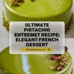 This Pistachio Entremet is a luxurious multi-layered French dessert featuring a rich pistachio mousse, a crisp almond dacquoise base, a creamy caramelised white chocolate cremeux insert, and a shiny green glaze. Perfect for special occasions, this elegant entremet combines various pastry techniques and flavors to create a stunning and delicious cake that will impress your guests.
