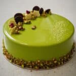 Keywords: pistachio entremet, French dessert, pistachio mousse, almond dacquoise, white chocolate cremeux, green glaze, layered cake, entremet recipe