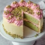 Keywords: Pistachio cake, rosewater cake, cardamom dessert, floral cake, Middle Eastern dessert