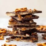 Keep your Pretzel Christmas Crack in an airtight bag or container in the freezer to maintain its crunch and freshness. It will stay delicious for up to two weeks. To serve, let it thaw at room temperature for a few minutes — no reheating needed.