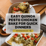 This Quinoa Pesto Chicken Bake is a simple, flavorful one-dish meal perfect for busy weeknights. Tender chicken breasts cooked atop fluffy quinoa, all enhanced with vibrant pesto and melted Parmesan cheese. It’s a wholesome, satisfying dinner that comes together with minimal prep.